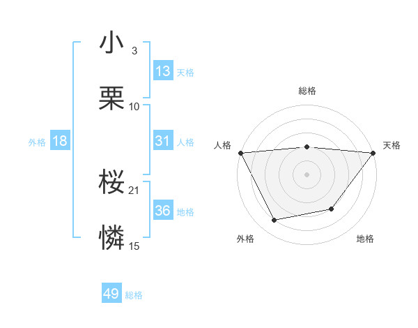 小栗 桜憐さんを姓名の画数から五運を鑑定