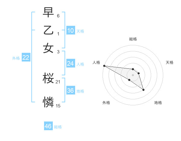 早乙女 桜憐さんを姓名の画数から五運を鑑定