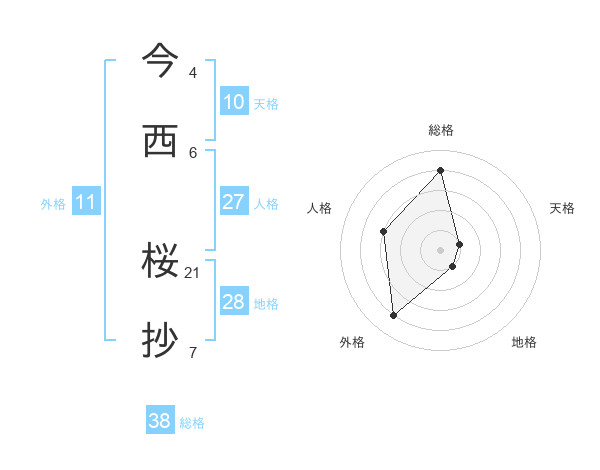 今西 桜抄さんを姓名の画数から五運を鑑定