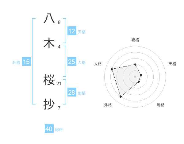 八木 桜抄さんの総格は40画の2点!