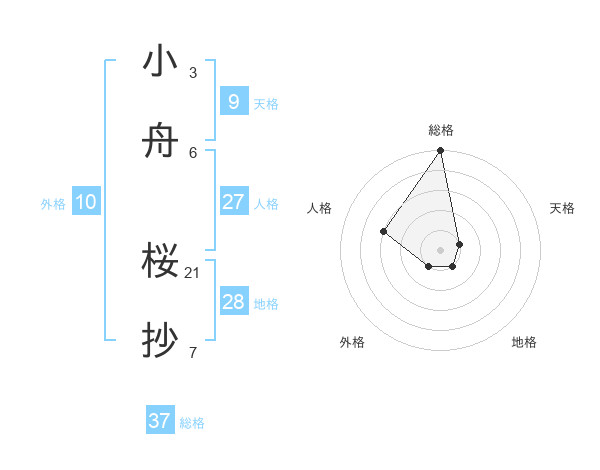 小舟 桜抄さんを姓名の画数から五運を鑑定