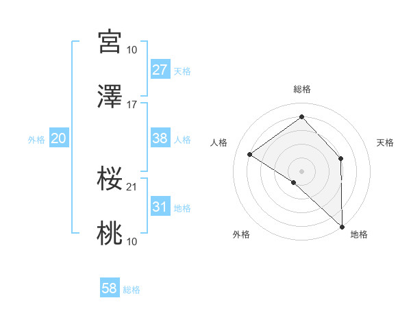 宮澤 桜桃さんを姓名の画数から五運を鑑定