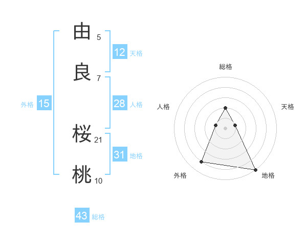 由良 桜桃さんを姓名の画数から五運を鑑定