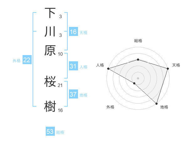 下川原 桜樹さんを姓名の画数から五運を鑑定
