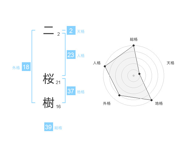 二 桜樹さんの総格は39画の5点!