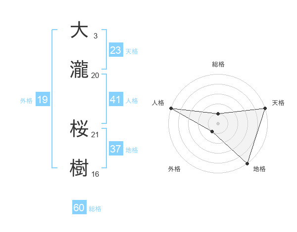 大瀧 桜樹さんを姓名の画数から五運を鑑定