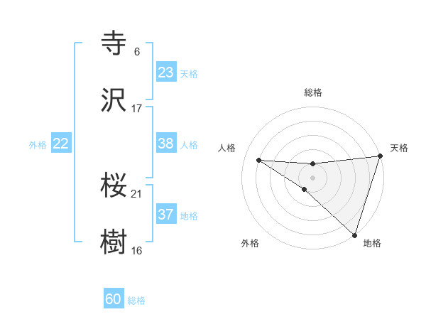 寺沢 桜樹さんの総格は60画の1点!