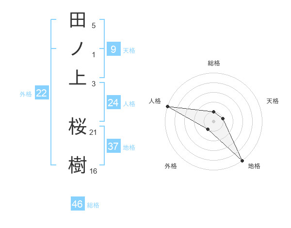田ノ上 桜樹さんの総格は46画の1点!
