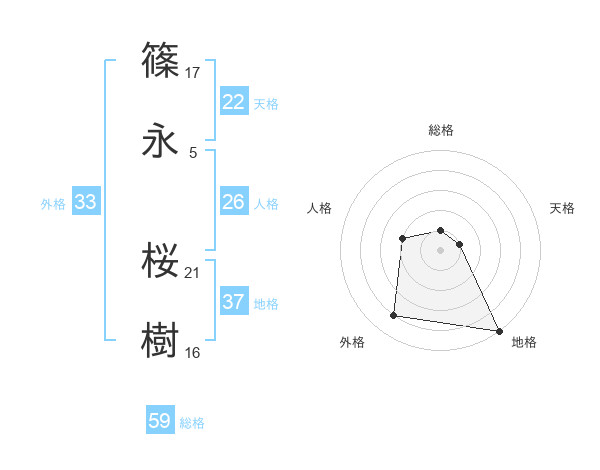 篠永 桜樹さんを姓名の画数から五運を鑑定