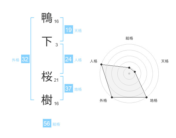 鴨下 桜樹さんを姓名の画数から五運を鑑定