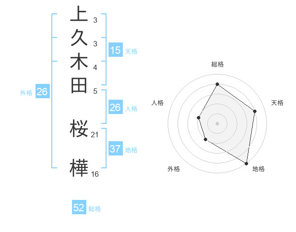 上久木田 桜樺さんを姓名の画数から五運を鑑定