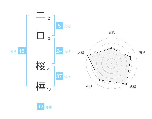 二口 桜樺さんを姓名の画数から五運を鑑定