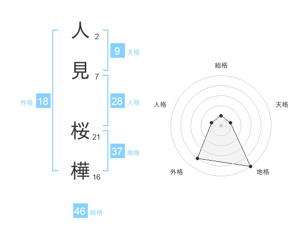 人見 桜樺さんの地格は37画の5点!