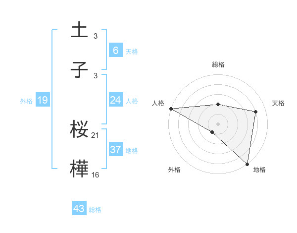 土子 桜樺さんを姓名の画数から五運を鑑定