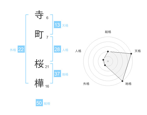 寺町 桜樺さんの地格は37画の5点!
