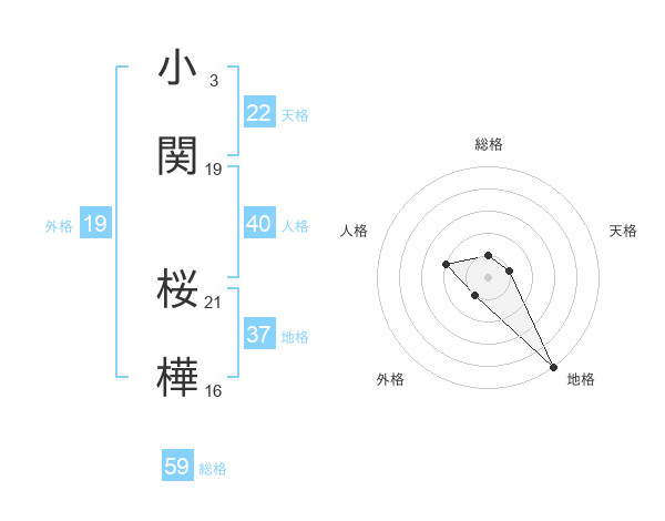 小関 桜樺さんを姓名の画数から五運を鑑定