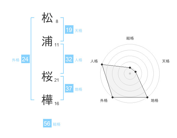 松浦 桜樺さんを姓名の画数から五運を鑑定