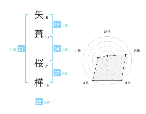 矢葺 桜樺さんを姓名の画数から五運を鑑定
