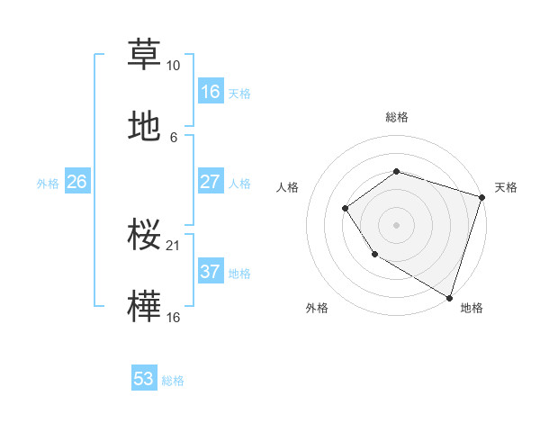 草地 桜樺さんの天格は16画の5点!