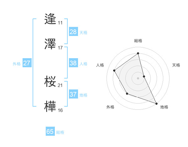 逢澤 桜樺さんの総格は65画の4点!
