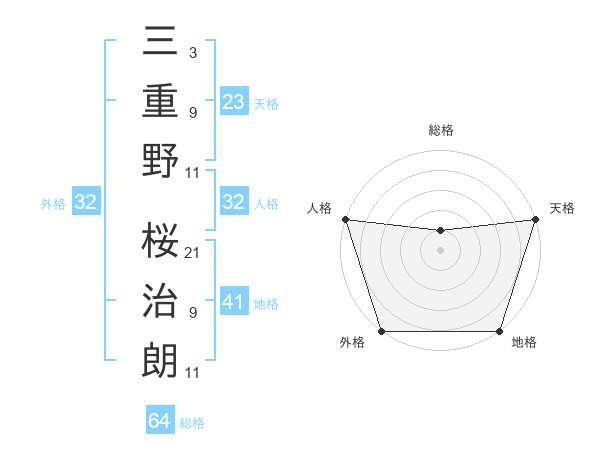 三重野 桜治朗さんの人格は32画の5点!