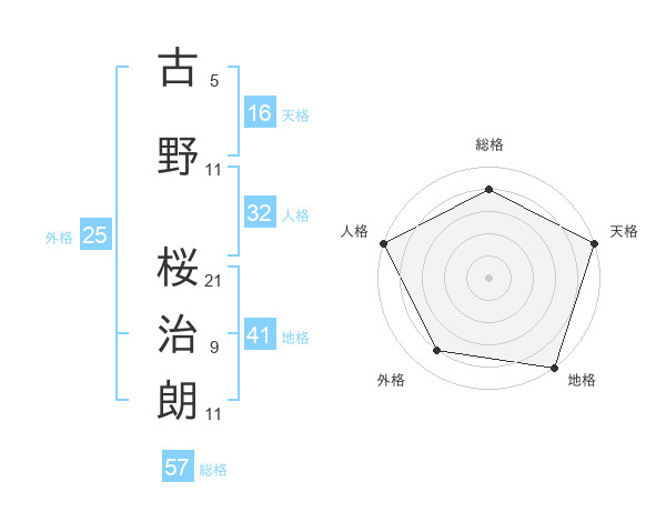 古野 桜治朗さんを姓名の画数から五運を鑑定