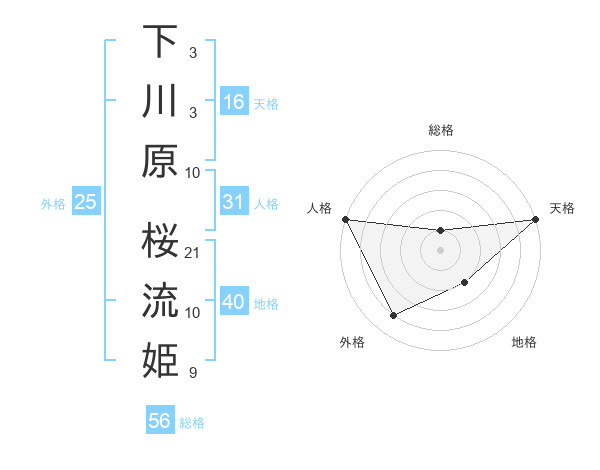 下川原 桜流姫さんを姓名の画数から五運を鑑定