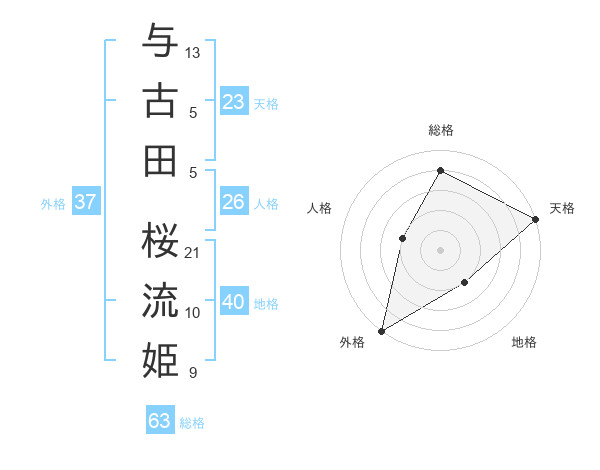 与古田 桜流姫さんを姓名の画数から五運を鑑定