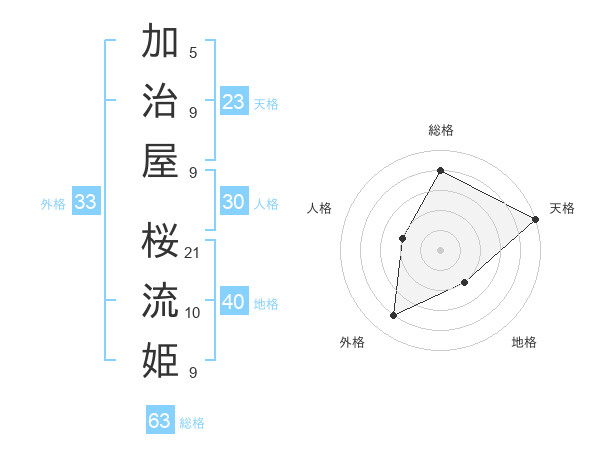 加治屋 桜流姫さんを姓名の画数から五運を鑑定