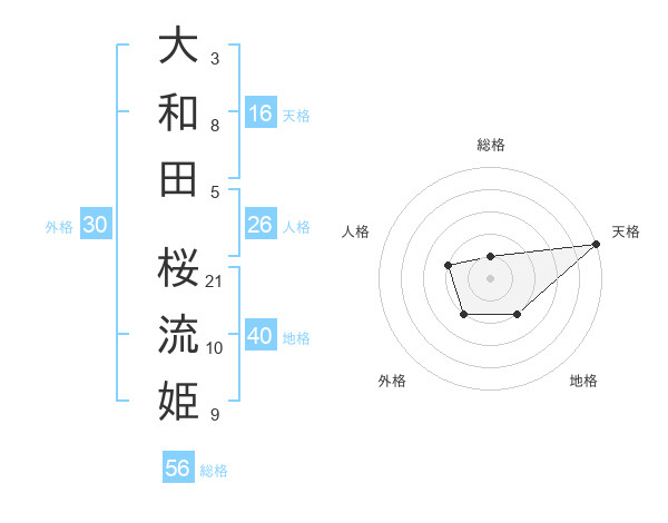 大和田 桜流姫さんを姓名の画数から五運を鑑定