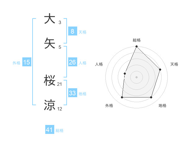 大矢 桜涼さんの外格は15画の4点!