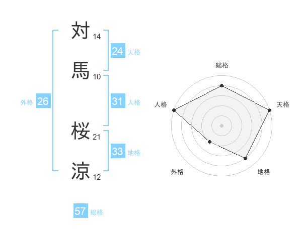 対馬 桜涼さんの総格は57画の4点!
