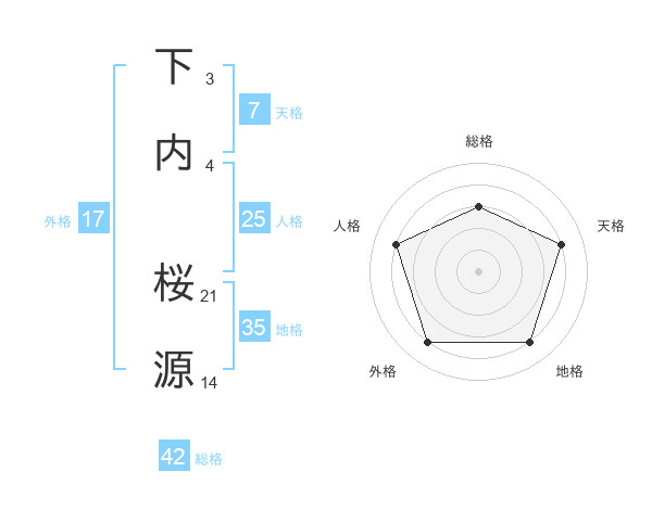 下内 桜源さんの総格は42画の3点!