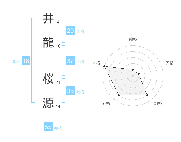井龍 桜源さんの総格は55画の1点!