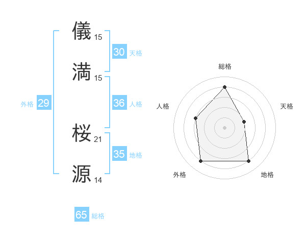 儀満 桜源さんの総格は65画の4点!