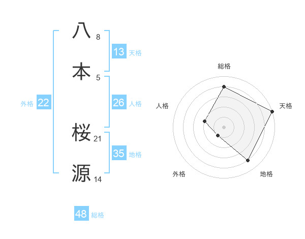 八本 桜源さんの天格は13画の5点!
