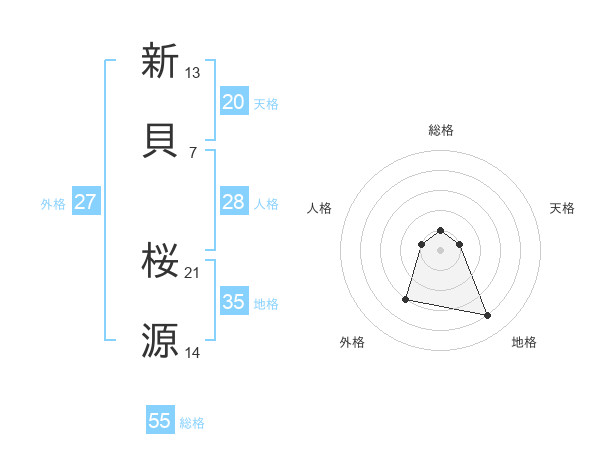 新貝 桜源さんの地格は35画の4点!