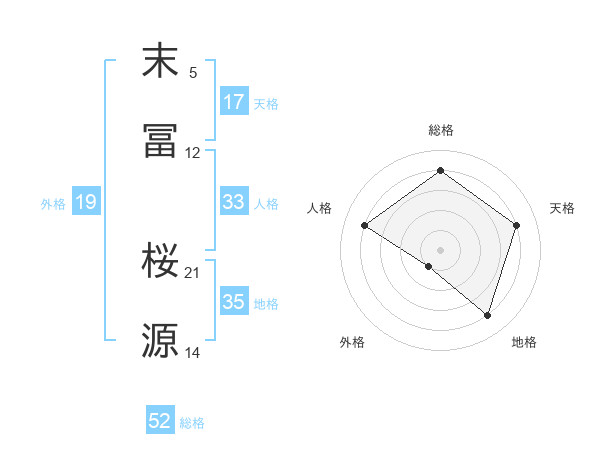 末冨 桜源さんを姓名の画数から五運を鑑定