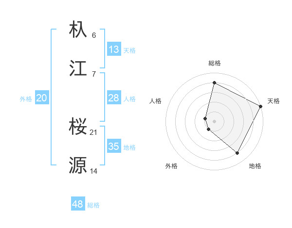 杁江 桜源さんの総格は48画の4点!