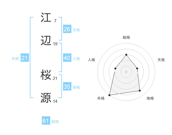 江辺 桜源さんの総格は61画の3点!