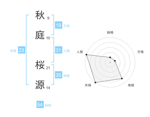 秋庭 桜源さんを姓名の画数から五運を鑑定
