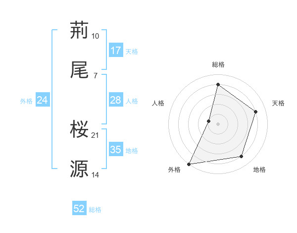 荊尾 桜源さんの総格は52画の4点!