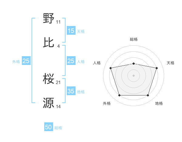 野比 桜源さんの総格は50画の2点!