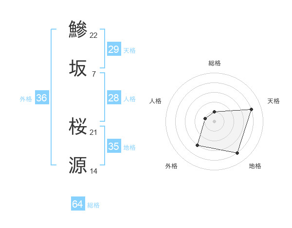 鰺坂 桜源さんの天格は29画の4点!
