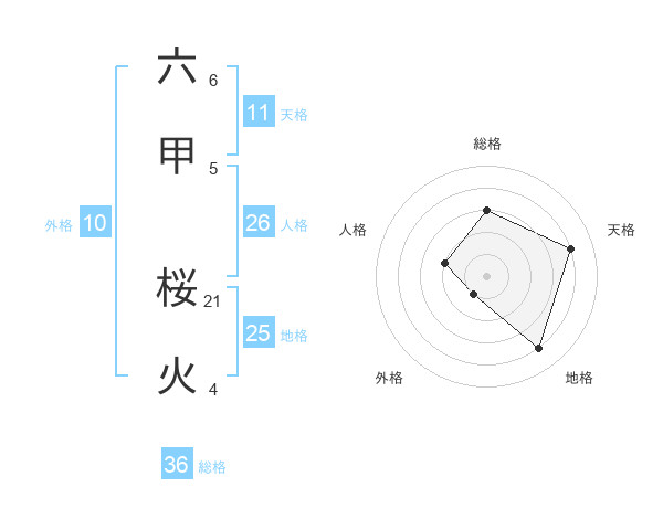 六甲 桜火さんの天格は11画の4点!