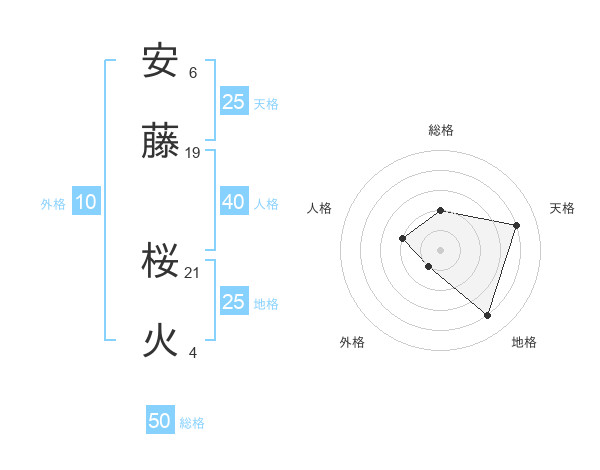 安藤 桜火さんを姓名の画数から五運を鑑定