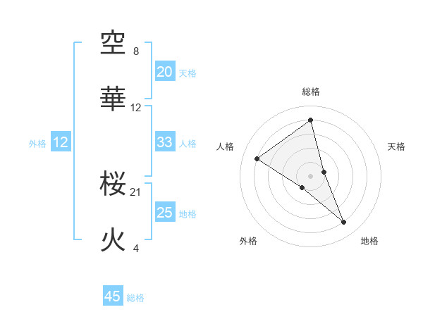 空華 桜火さんの総格は45画の4点!