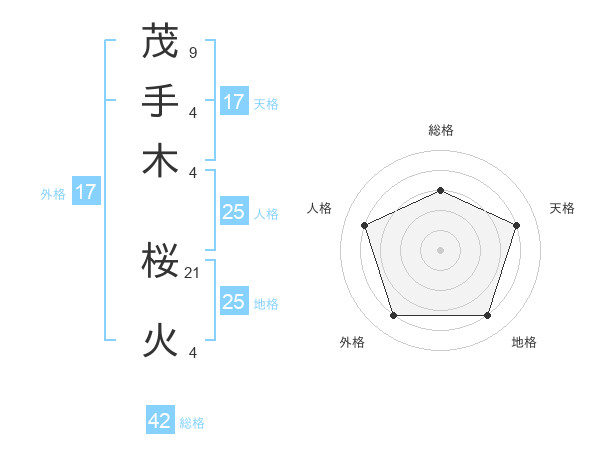 茂手木 桜火さんを姓名の画数から五運を鑑定