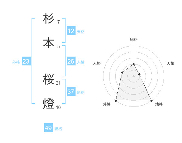 杉本 桜燈さんを姓名の画数から五運を鑑定