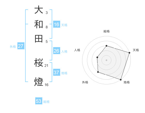 大和田 桜燈さんの天格は16画の5点!